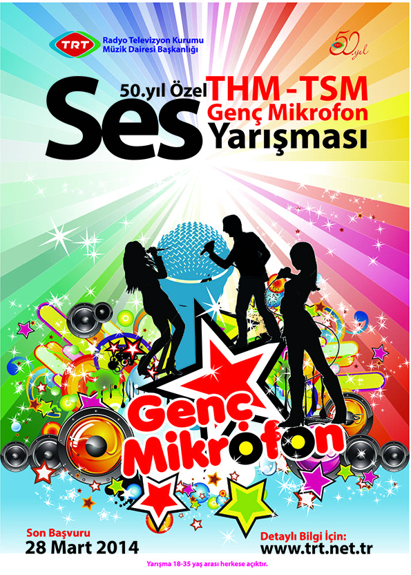 Türkiye Radyo-Televizyon Kurumu’nun (TRT) kuruluşunun 50. yılı kutlamaları çerçevesinde "TRT 50. Yıl Türk Halk Müziği-Türk Sanat Müziği Genç Mikrofon Ses Yarışması 2014" adı altında bir etkinlik düzenlenmesi öngörülmektedir. Türk kültürünün önemli yapı taşlarından olan geleneksel müziğimizi gençlere tanıtmak amacıyla düzenlenecek sözkonusu etkinliğeait tüm bilgilere www.trt.net.tr adresinden ulaşılması mümkündür.